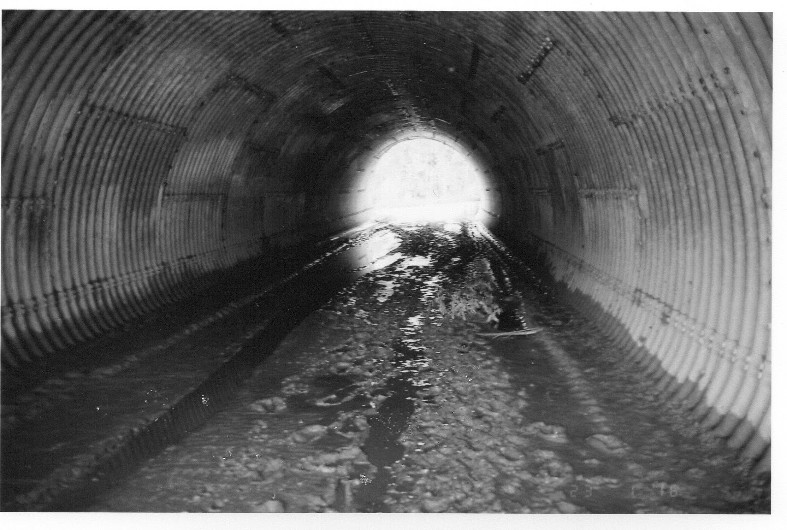 De repente, à nossa frente, uma passagem em túnel enlameado sob a auto-estrada.